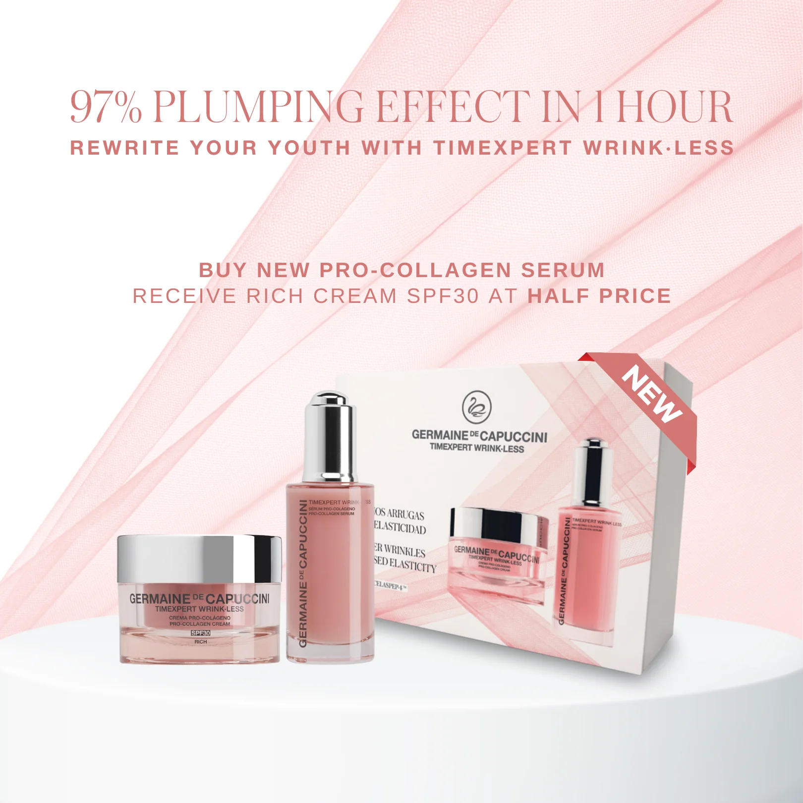 Discover firmer, youthful skin with the WrinkLess Pro Collagen Duo, ideal for normal to dry skin.